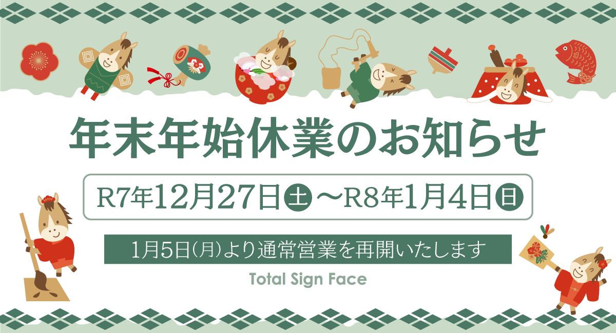 誠に勝手ながらトータルサイン・フェイスでは下記の期間を年末年始休業とさせていただきます。