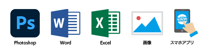 Officeソフトやスマホアプリ等で制作したデザインは、カッティングの機器で読み込むことができません。そういったデザインの場合は、そのまま使うことができないので、当店にてIllustratorで制作し直す必要があります。デザインによっては別途トレース費用をいただくことがあります。